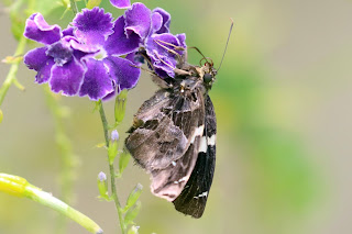 Most of the rain seems to be going around our yard at Progreso Lakes but were still getting butterflies. About every day I check the Giant Dutchman's Pipe for Polydamas Swallowtail caterpillars and find none. Today I noticed an adult female ovipositing and counted 15 cats. Some were big. Don't know how I missed them.